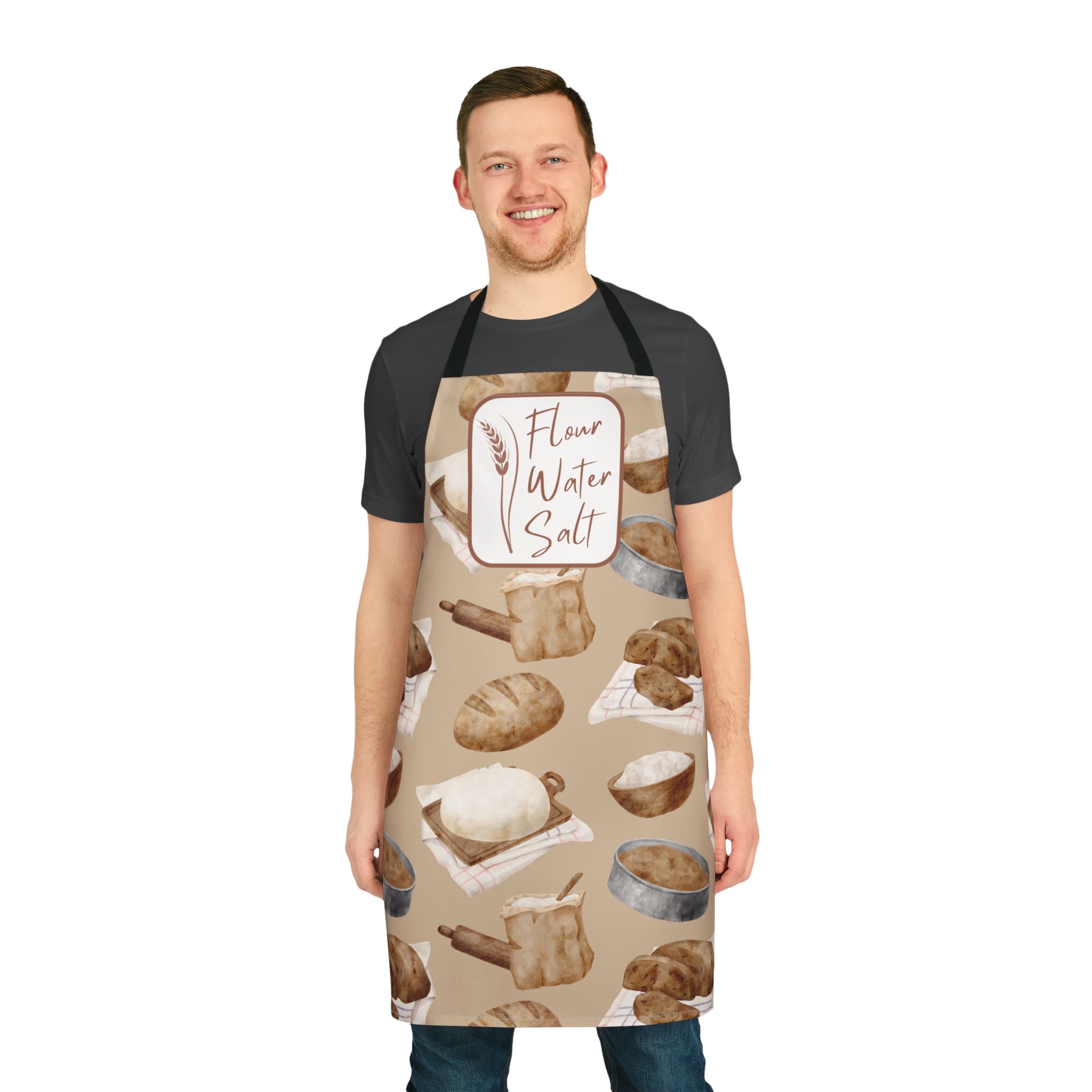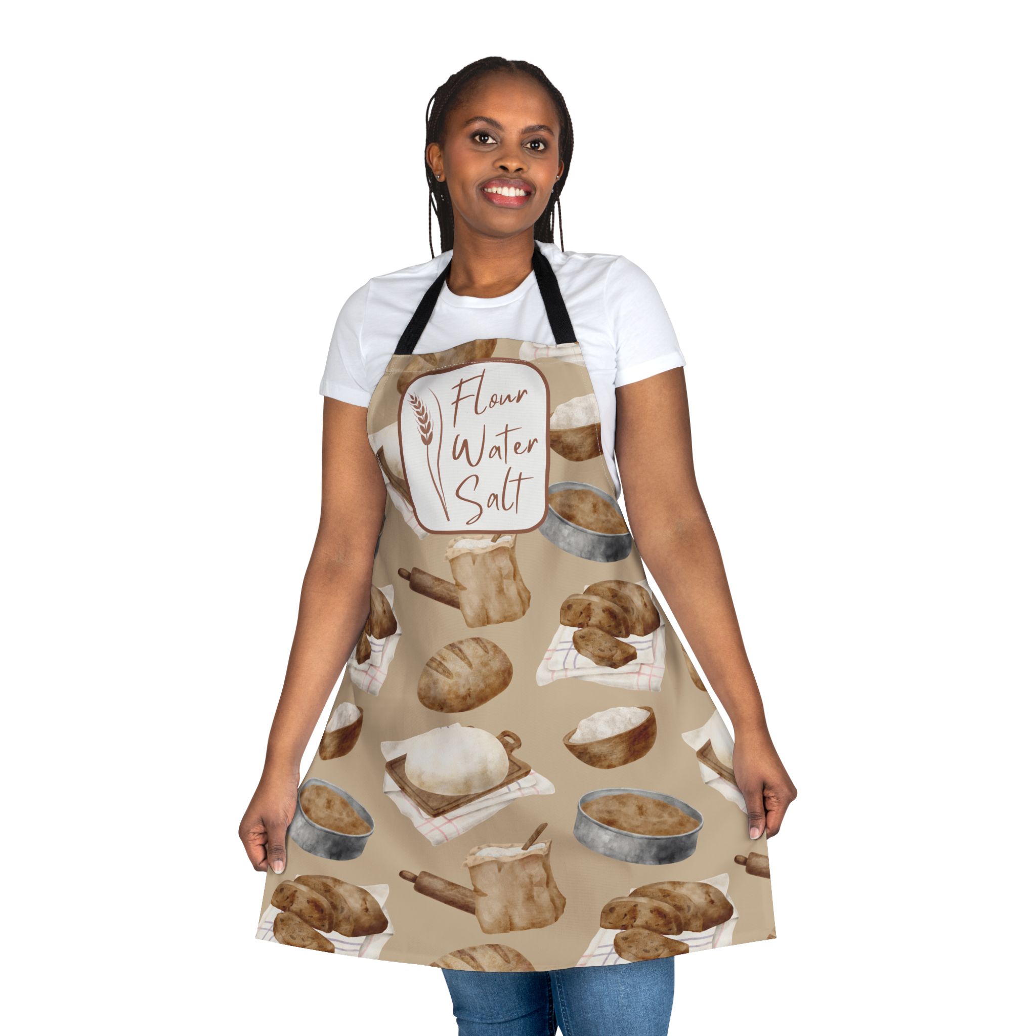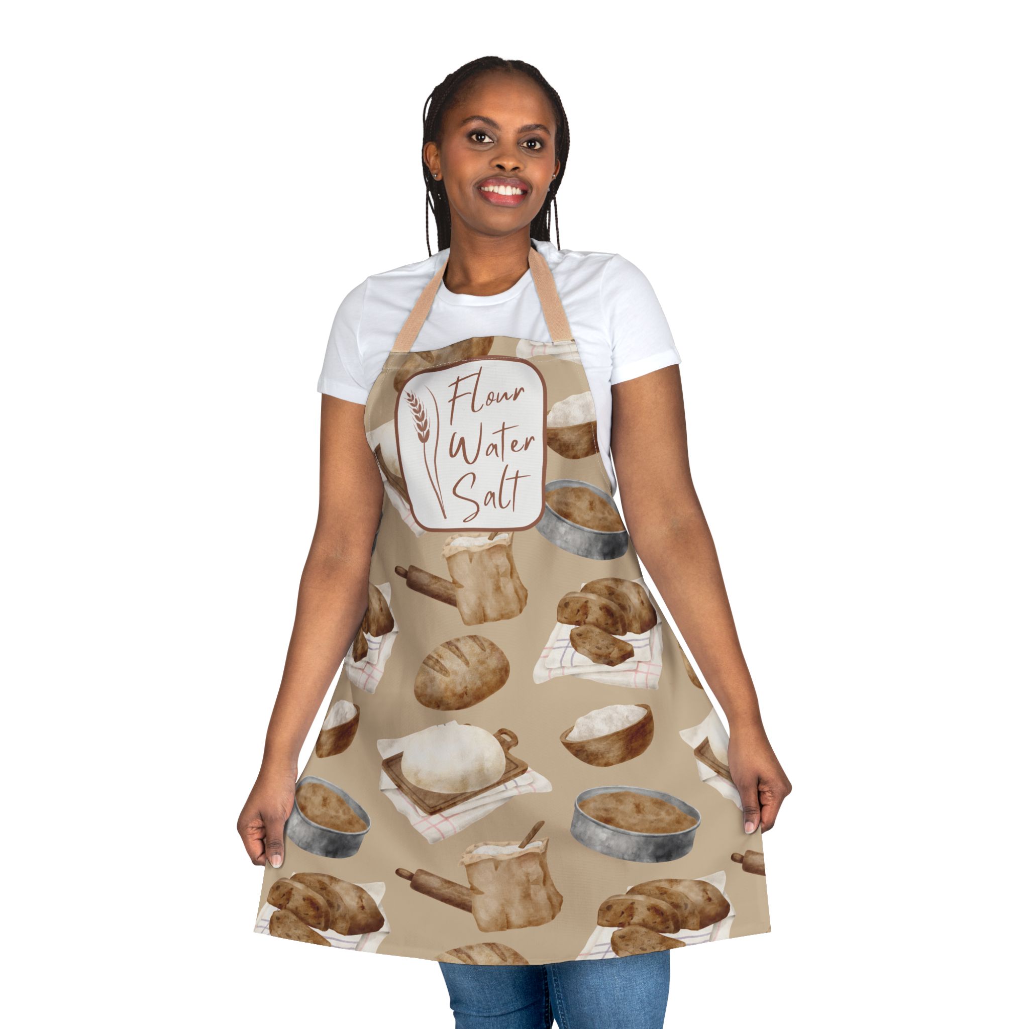Introducing our “Flour Water Salt” apron with a whimsical baking print– the perfect companion for your sourdough adventures and moments of baking bliss. Crafted with the finest materials and featuring a delightful design, this apron is sure to become your go-to kitchen accessory.