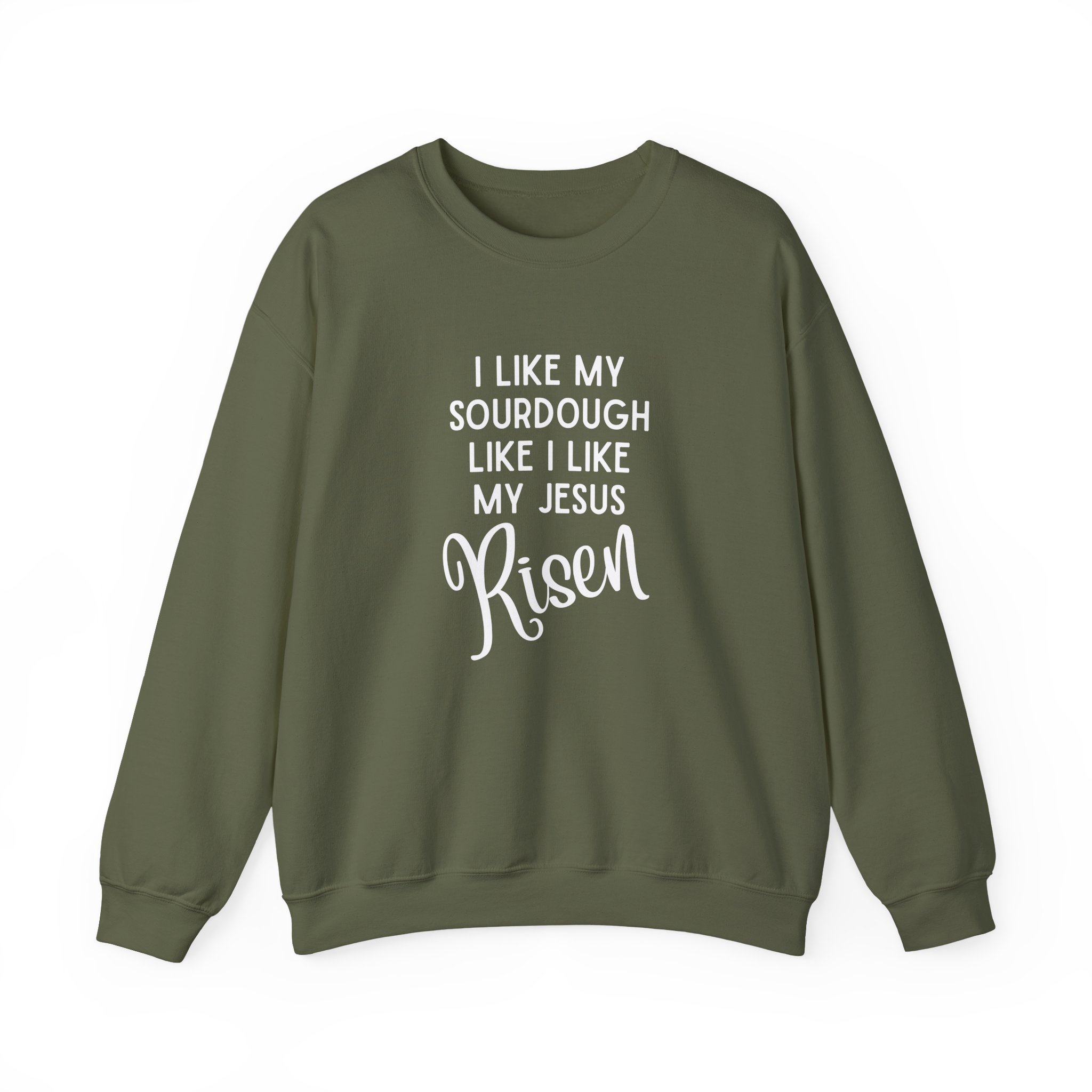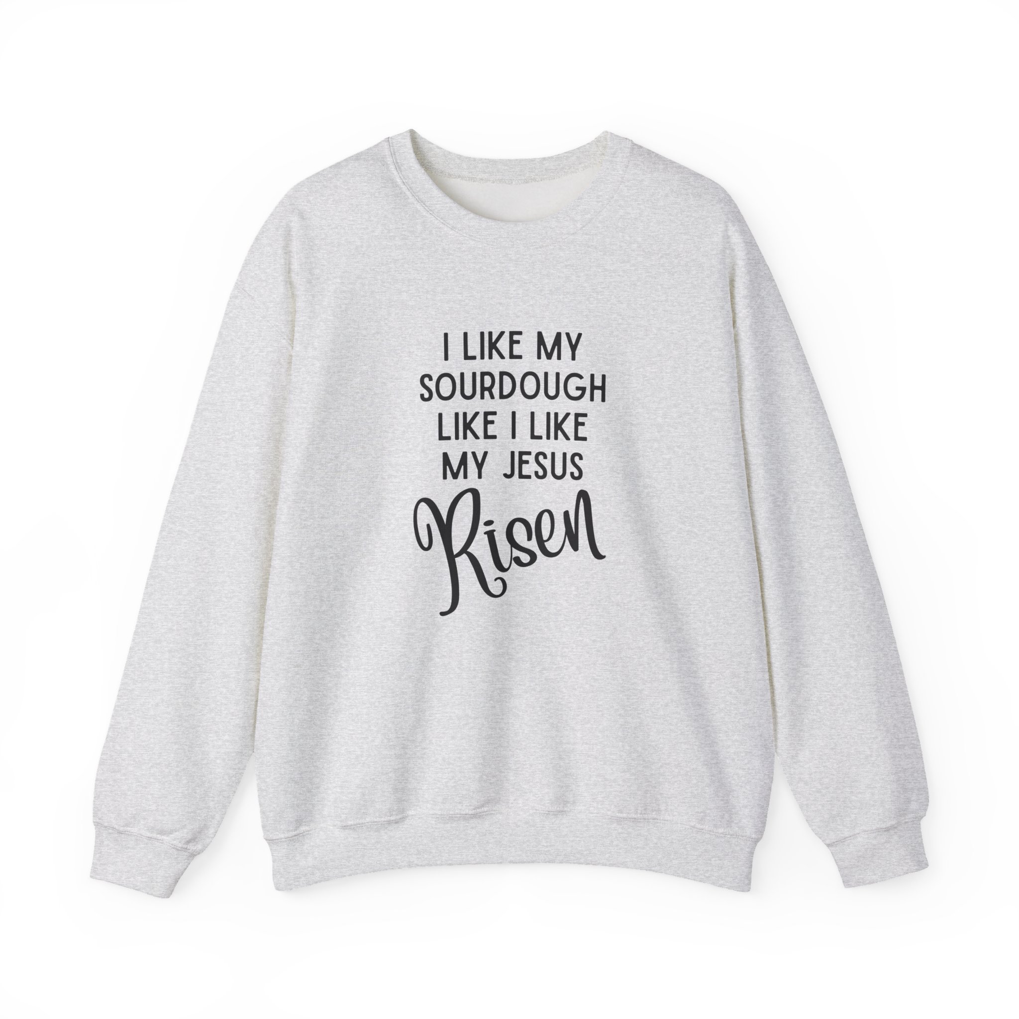 This witty sweatshirt is perfect for sourdough lovers with a sense of humor. Featuring the bold phrase “I like my sourdough like I like Jesus, risen,” it’s equal parts clever, cozy, and conversation-starting. Made with soft, breathable cotton and a classic fit, it’s a must-have for bread bakers, church potlucks, or anyone who appreciates a good rise.