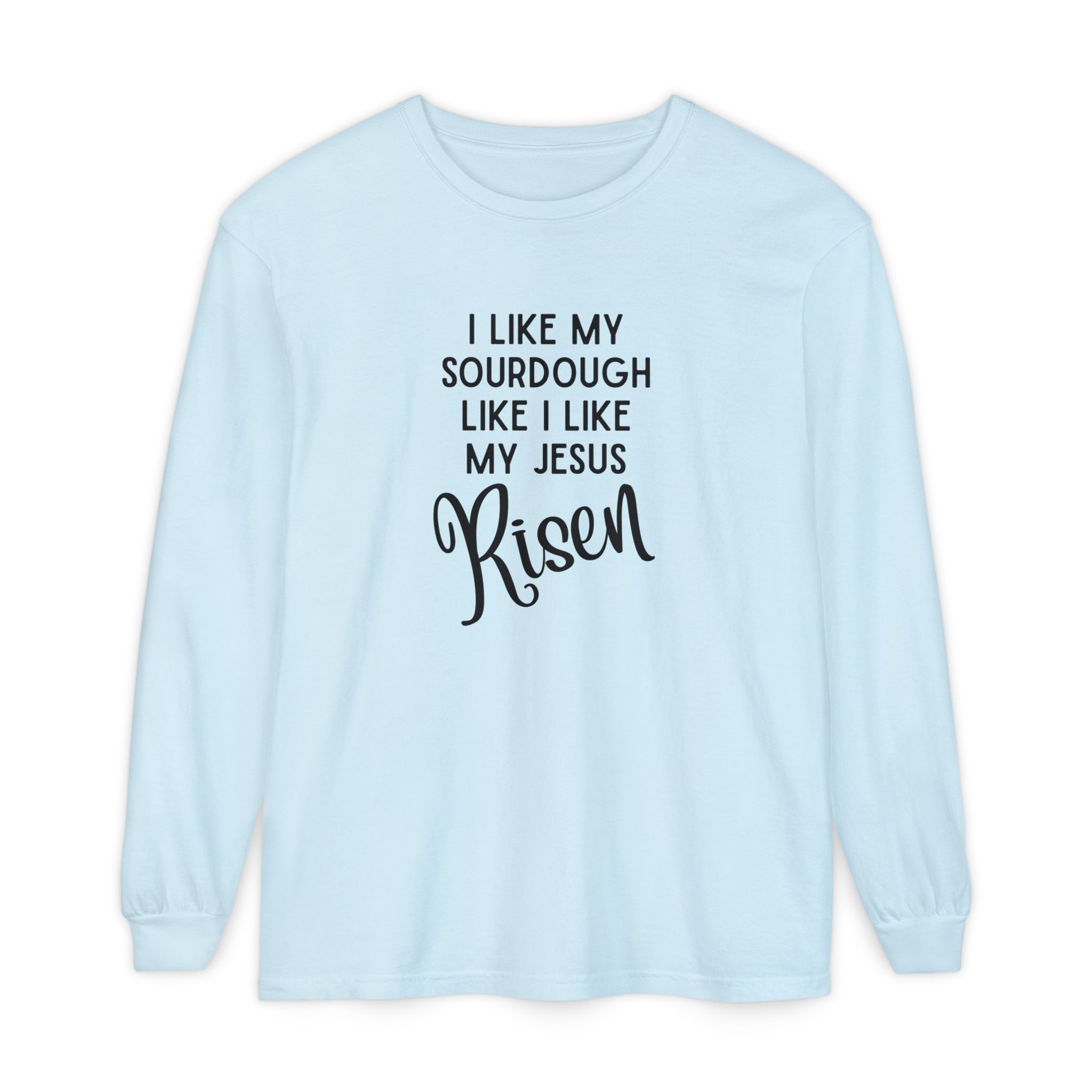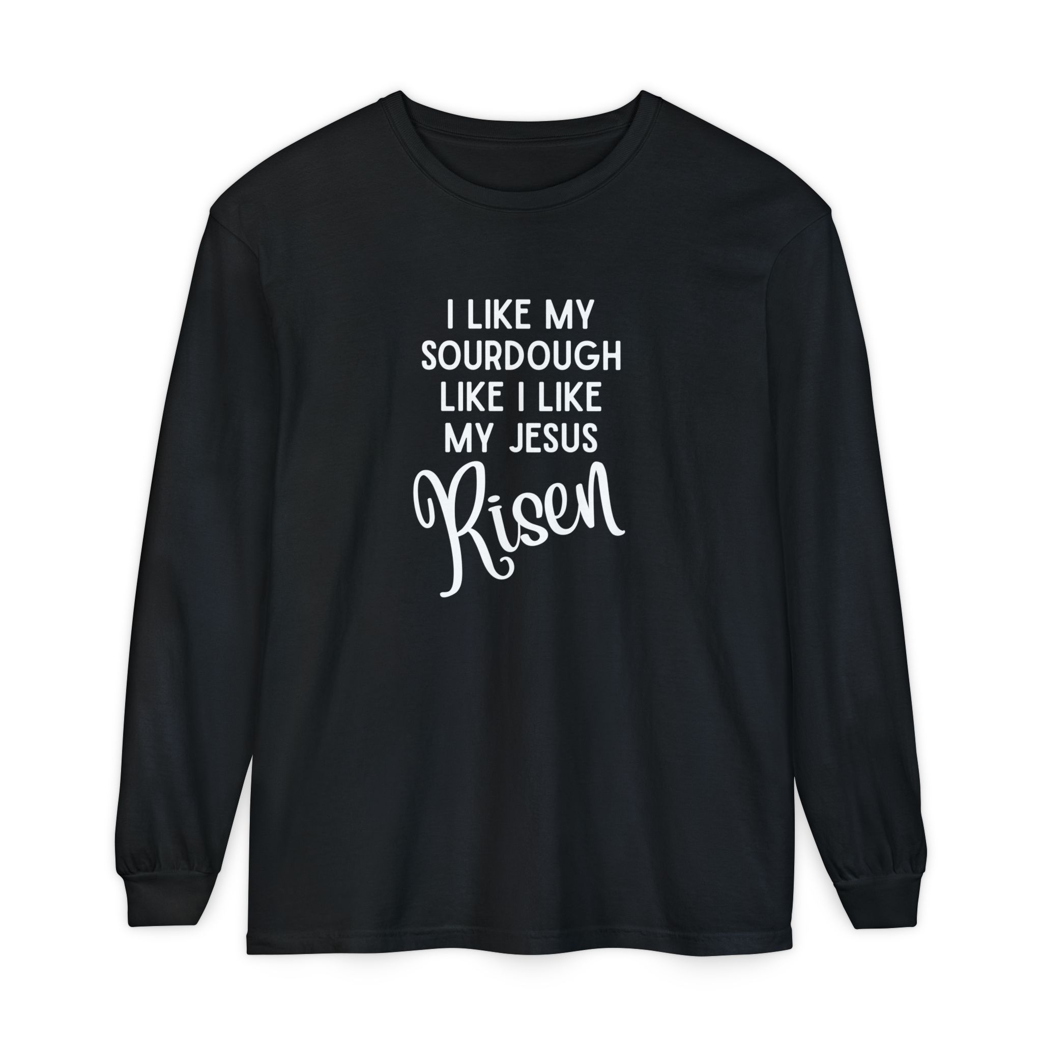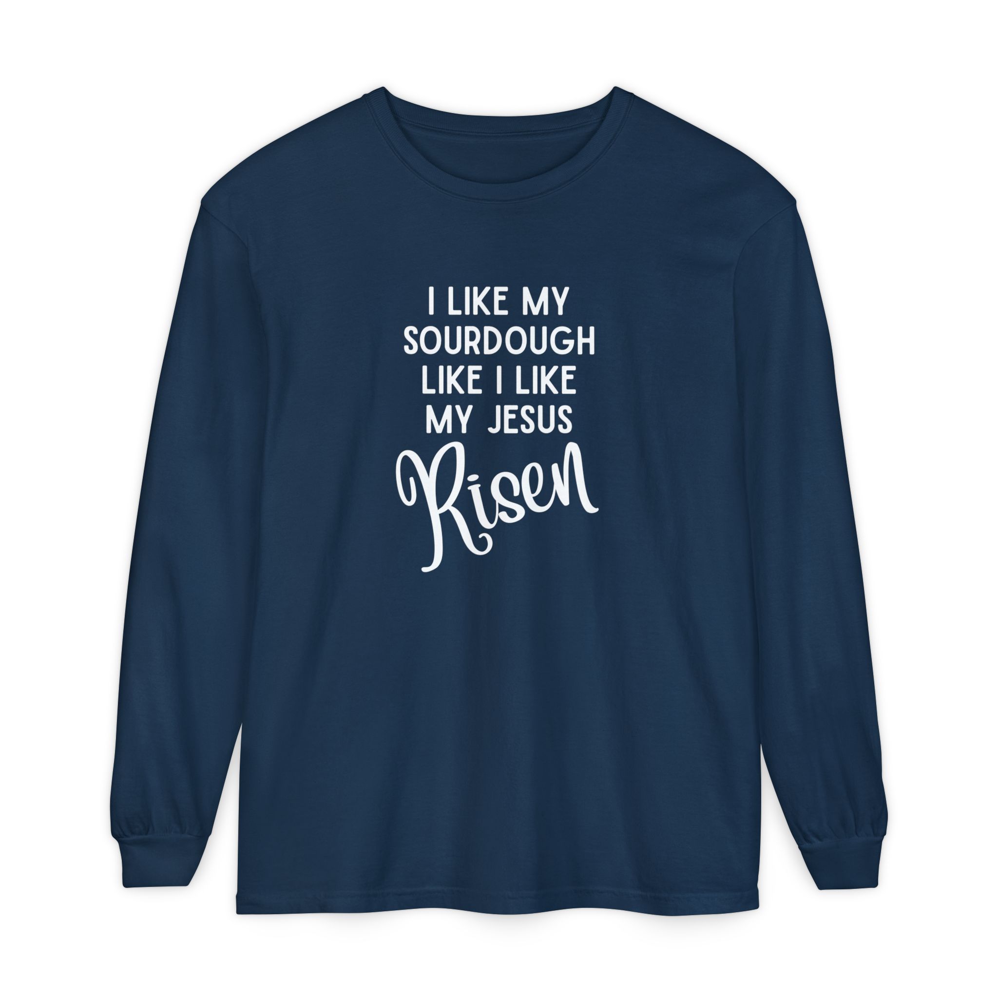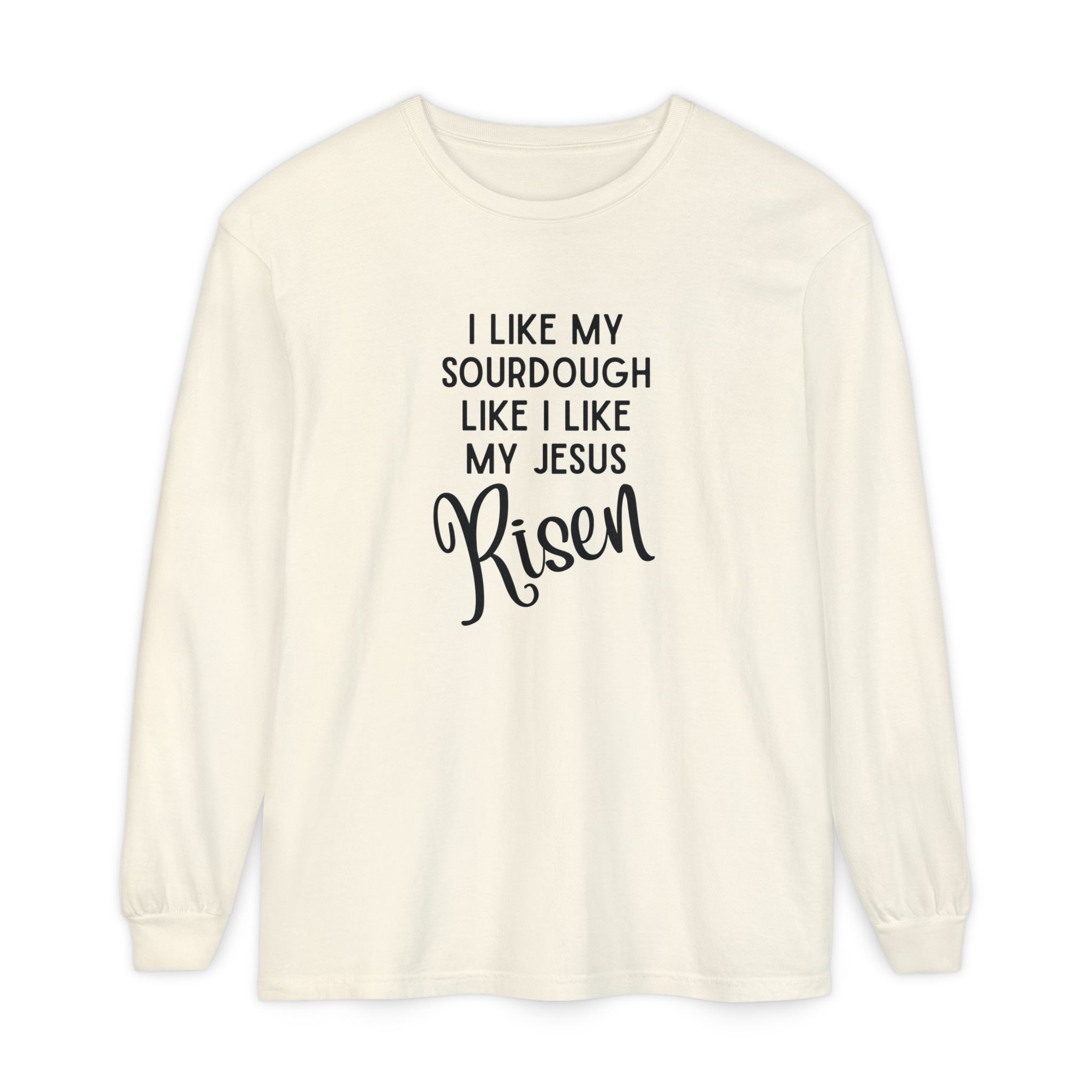 This witty tee is perfect for sourdough lovers with a sense of humor. Featuring the bold phrase “I like my sourdough like I like Jesus, risen,” it’s equal parts clever, cozy, and conversation-starting. Made with soft, breathable cotton and a classic fit, it’s a must-have for bread bakers, church potlucks, or anyone who appreciates a good rise.