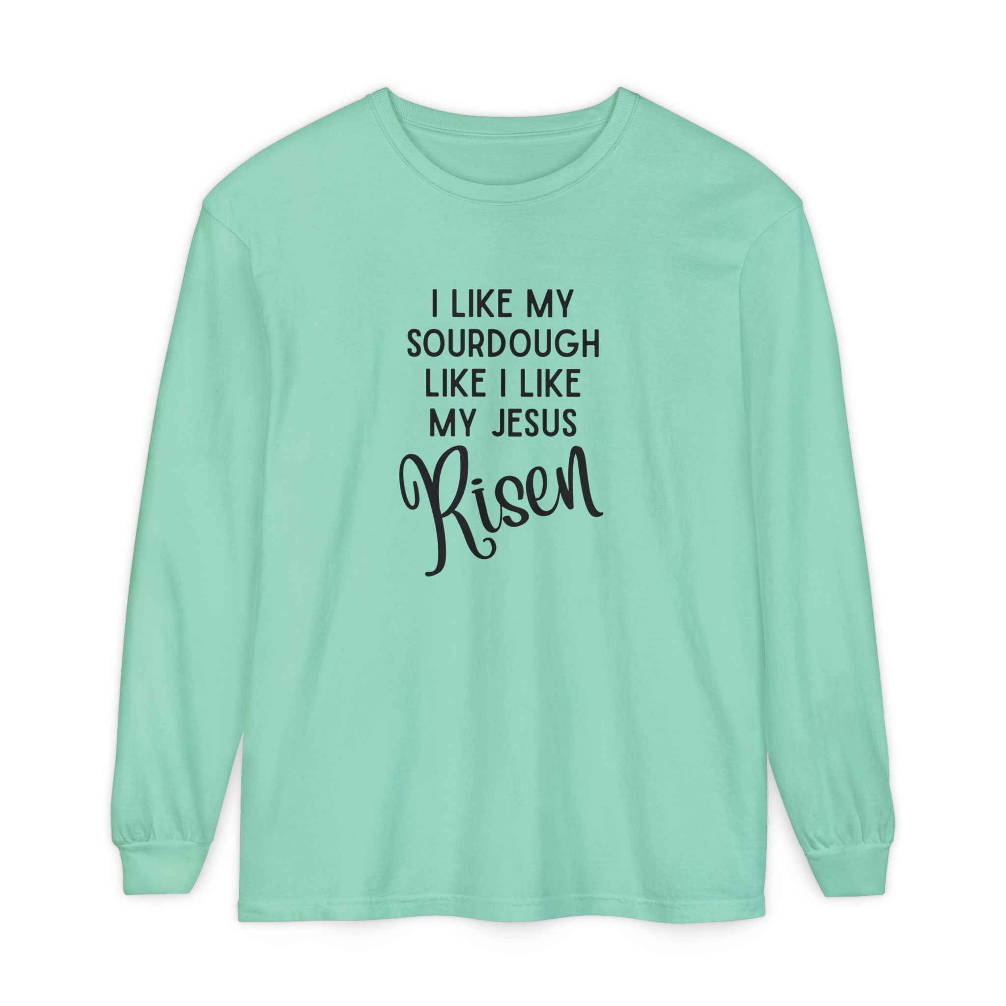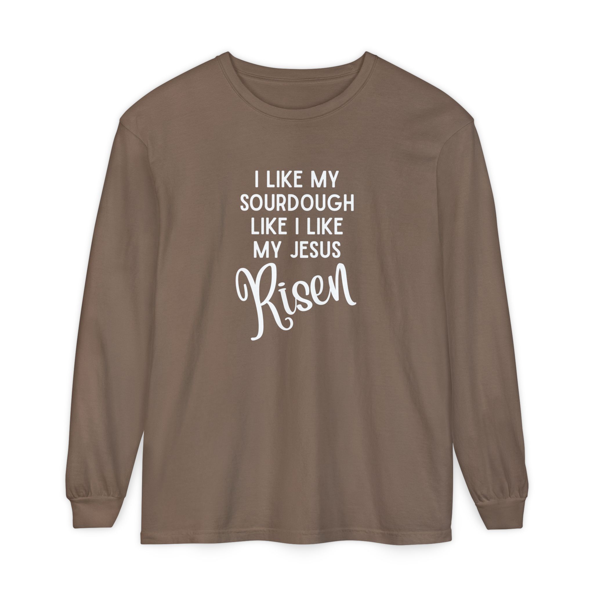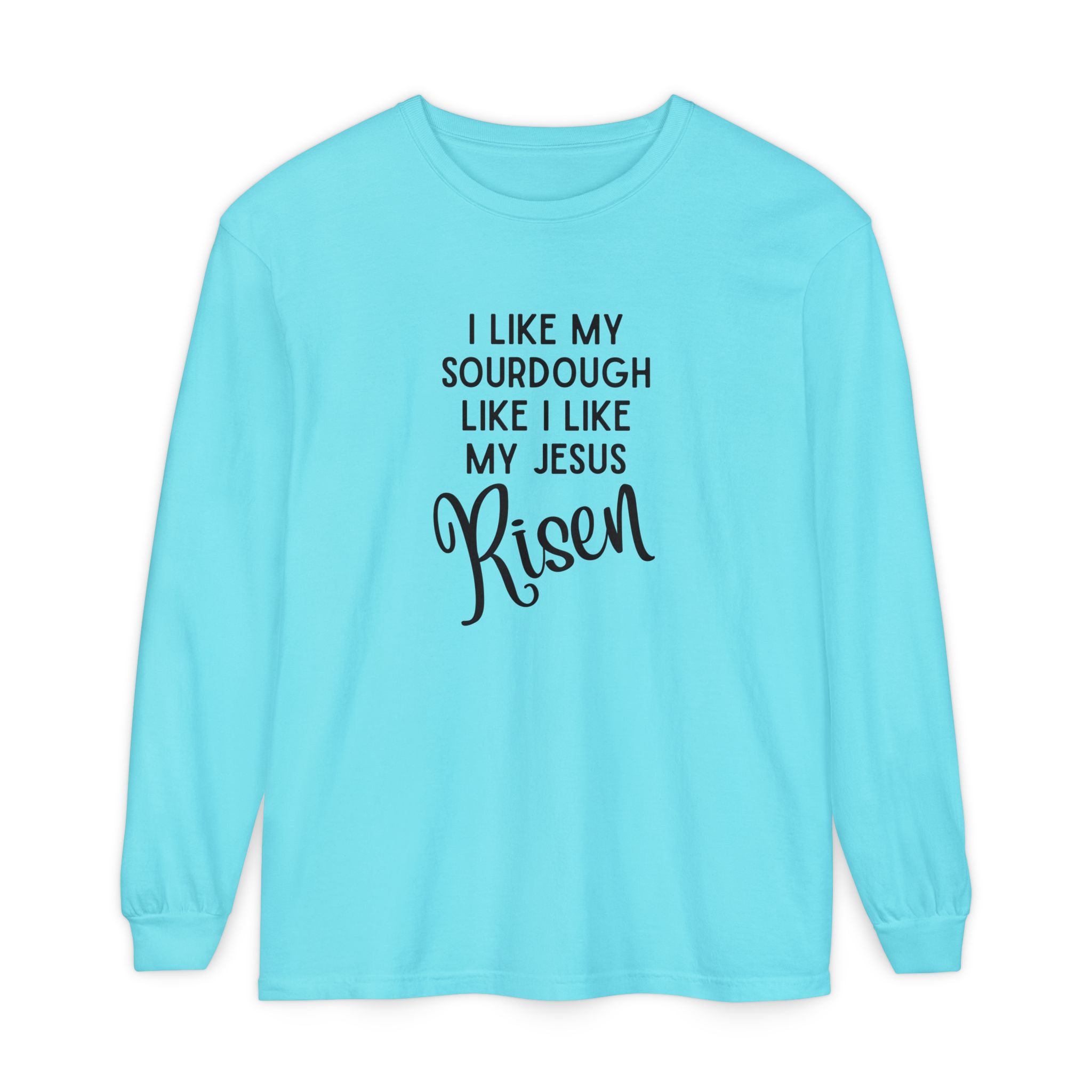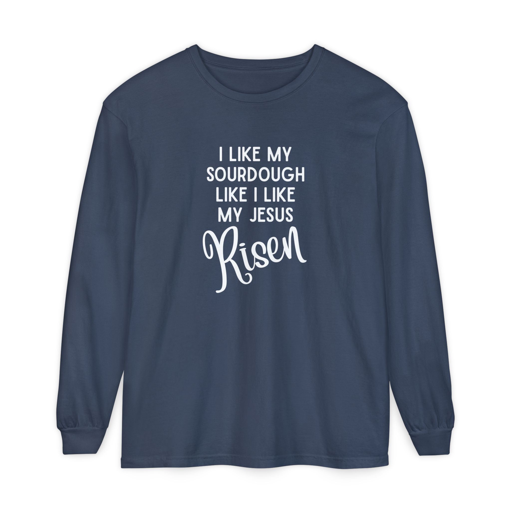 This witty tee is perfect for sourdough lovers with a sense of humor. Featuring the bold phrase “I like my sourdough like I like Jesus, risen,” it’s equal parts clever, cozy, and conversation-starting. Made with soft, breathable cotton and a classic fit, it’s a must-have for bread bakers, church potlucks, or anyone who appreciates a good rise.