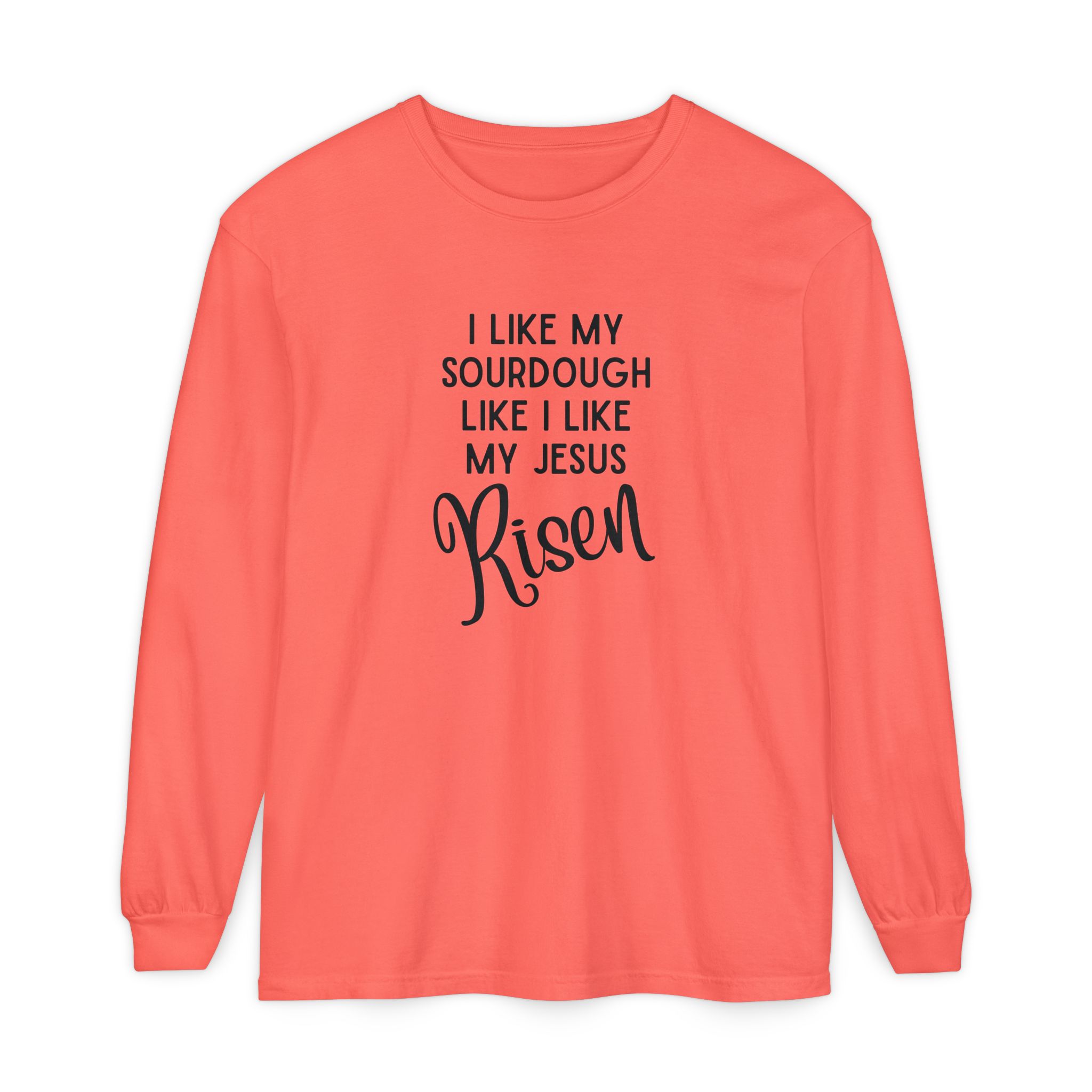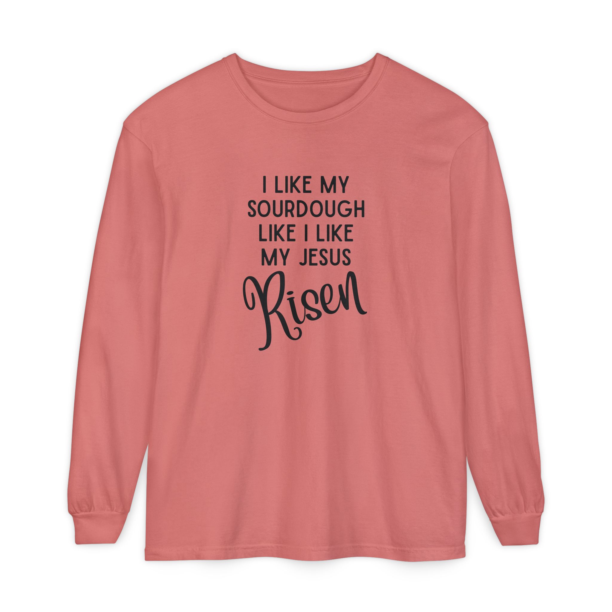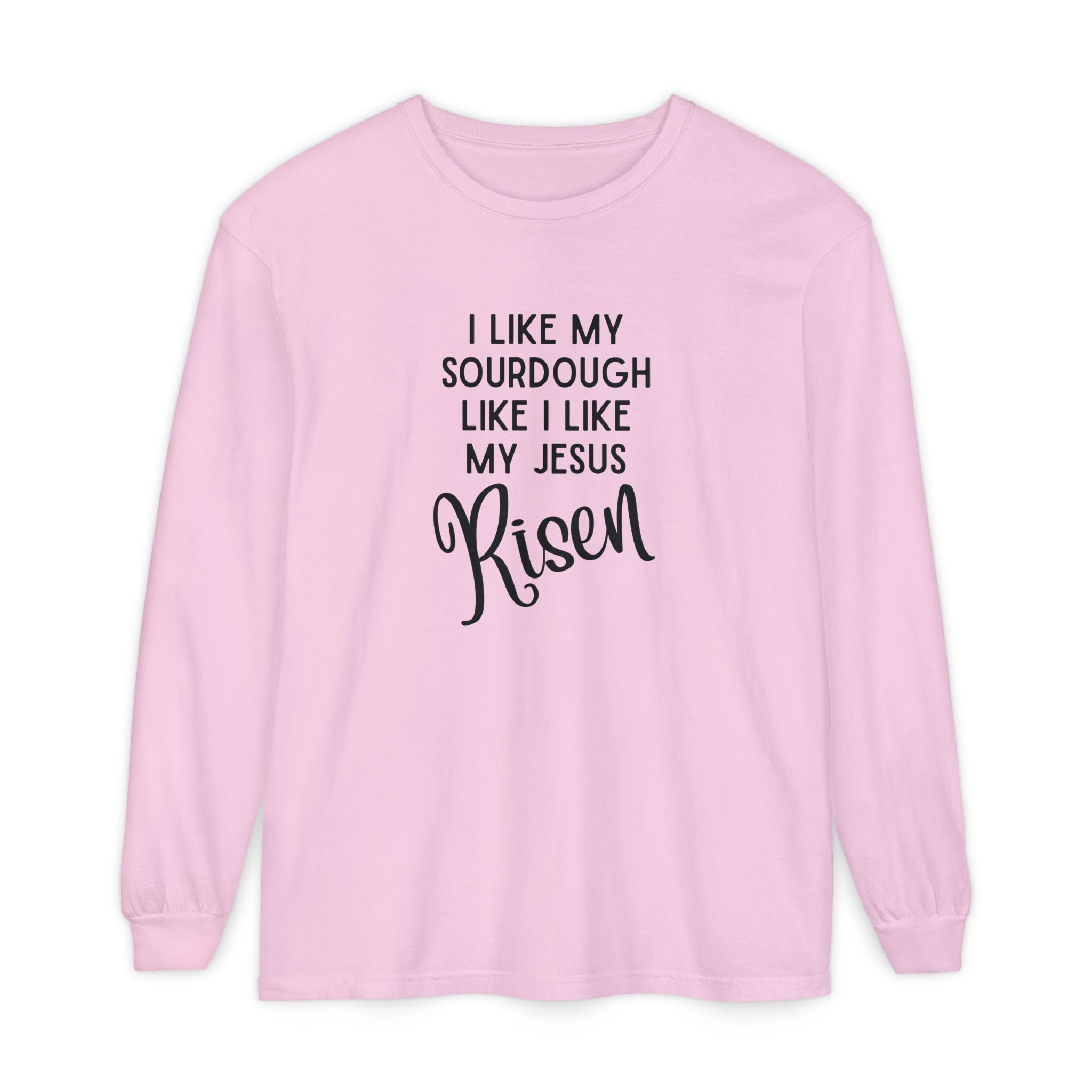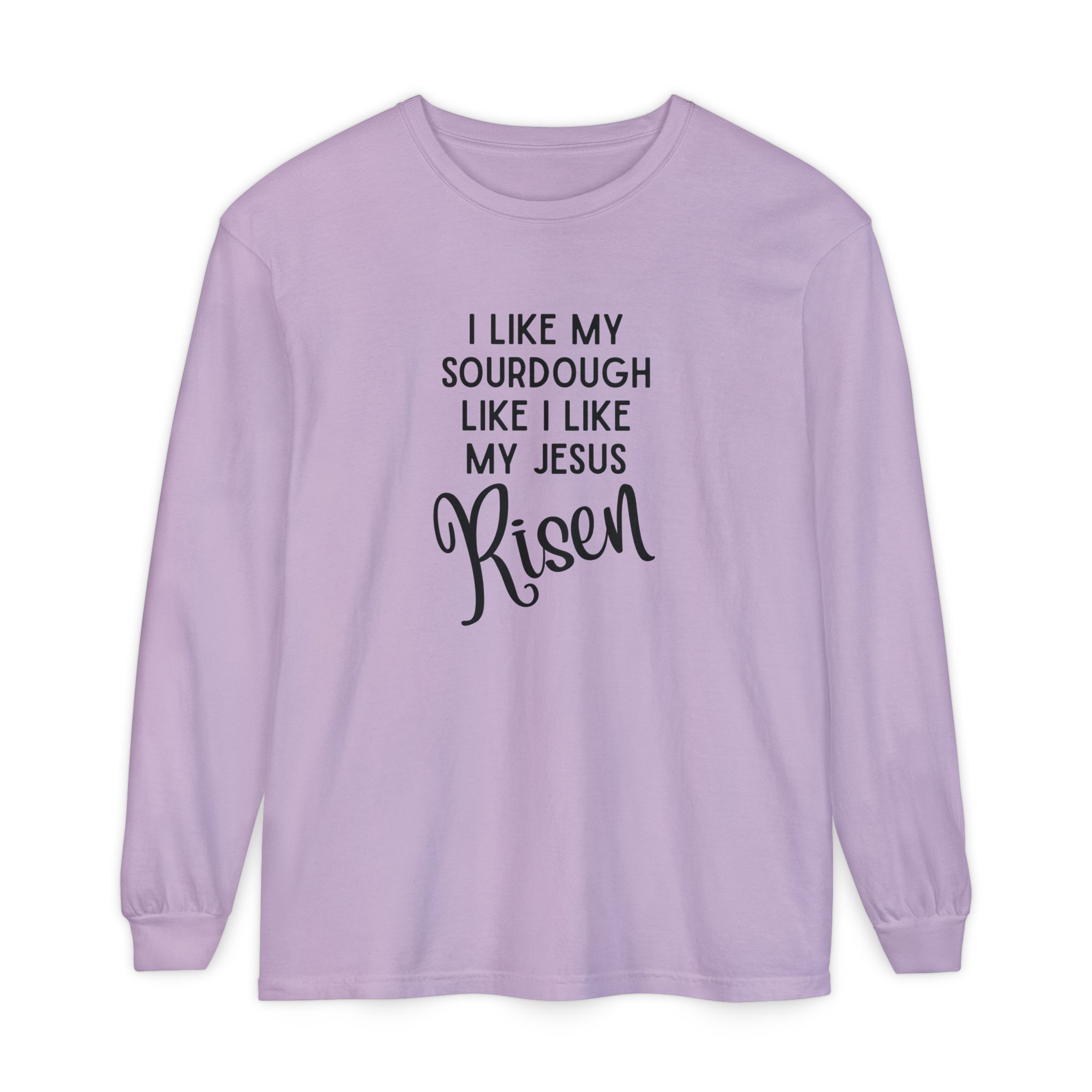 This witty tee is perfect for sourdough lovers with a sense of humor. Featuring the bold phrase “I like my sourdough like I like Jesus, risen,” it’s equal parts clever, cozy, and conversation-starting. Made with soft, breathable cotton and a classic fit, it’s a must-have for bread bakers, church potlucks, or anyone who appreciates a good rise.