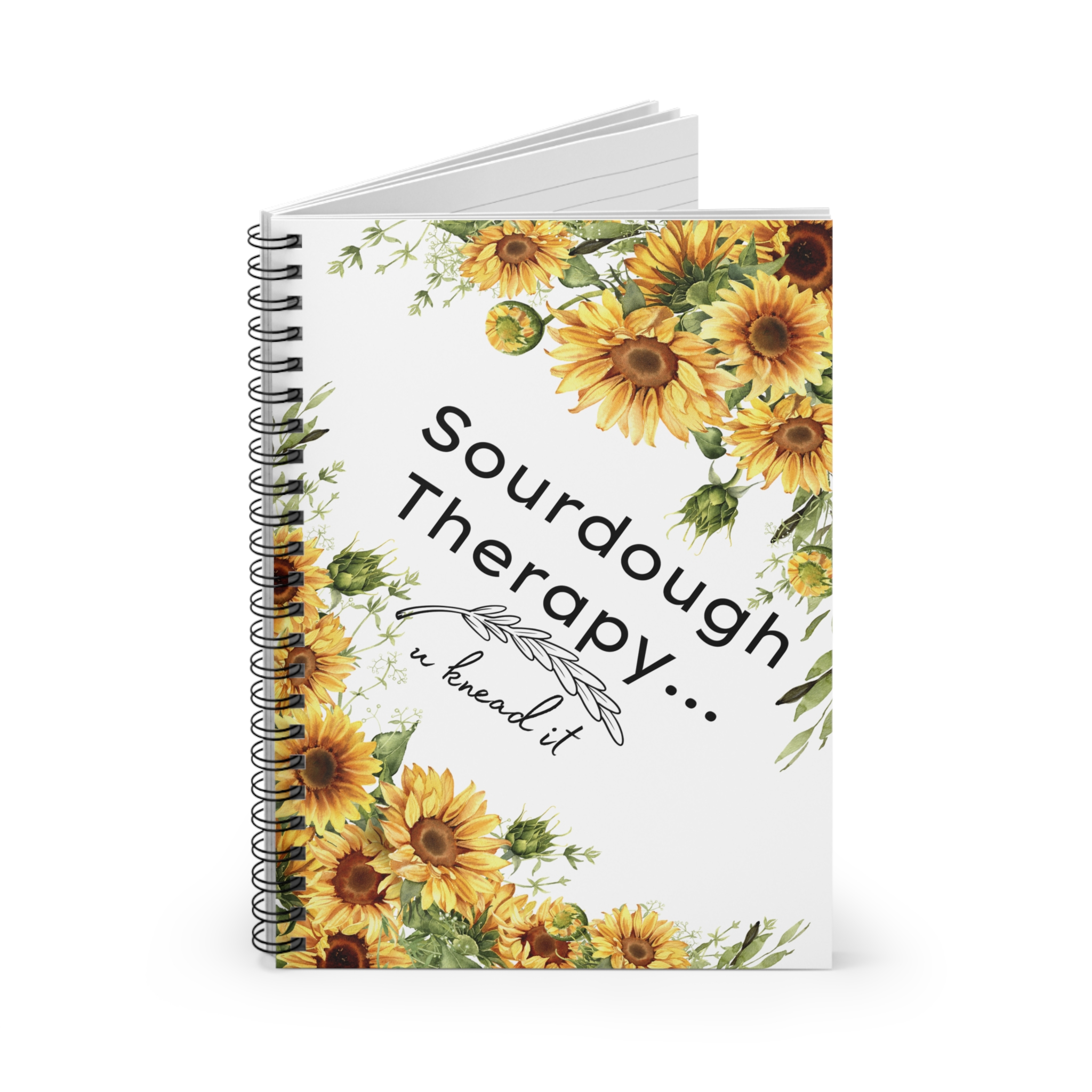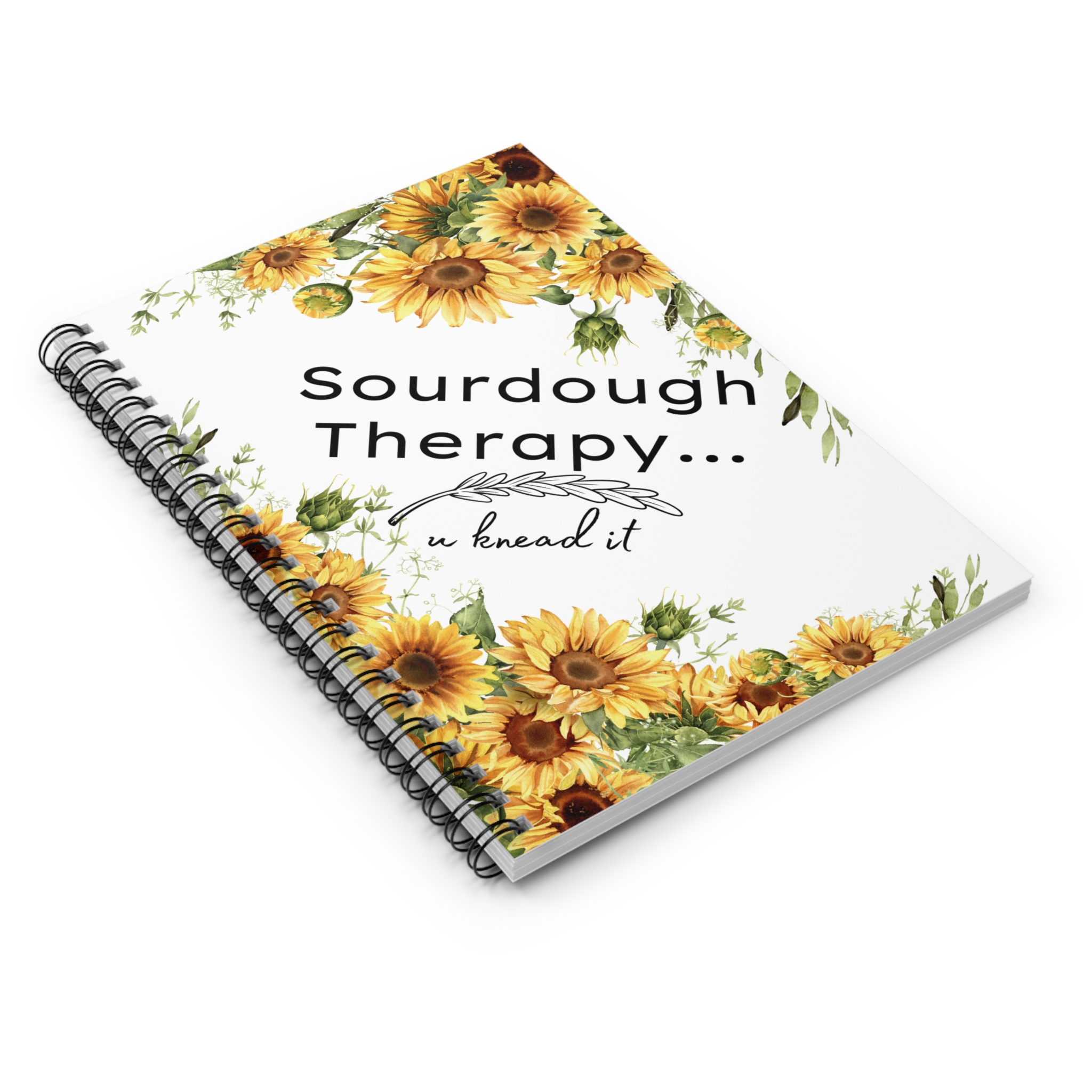 Keep track of your sourdough adventures with our, sunflower, sourdough therapy, u knead it, sourdough baker notebook, designed for taking detailed baking notes! This notebook features a durable cover and high-quality paper, providing the perfect canvas for recording your recipes, observations, and techniques. The inside pages are lined for easy writing, with plenty of space for jotting down ingredient lists, fermentation times, and shaping methods. Whether you’re a seasoned sourdough baker or just starting out, this notebook is an essential tool for honing your skills and perfecting your loaves. Treat yourself or surprise the sourdough enthusiast in your life with this practical and thoughtful notebook. So, grab your pen, open the pages, and let the baking experiments begin!