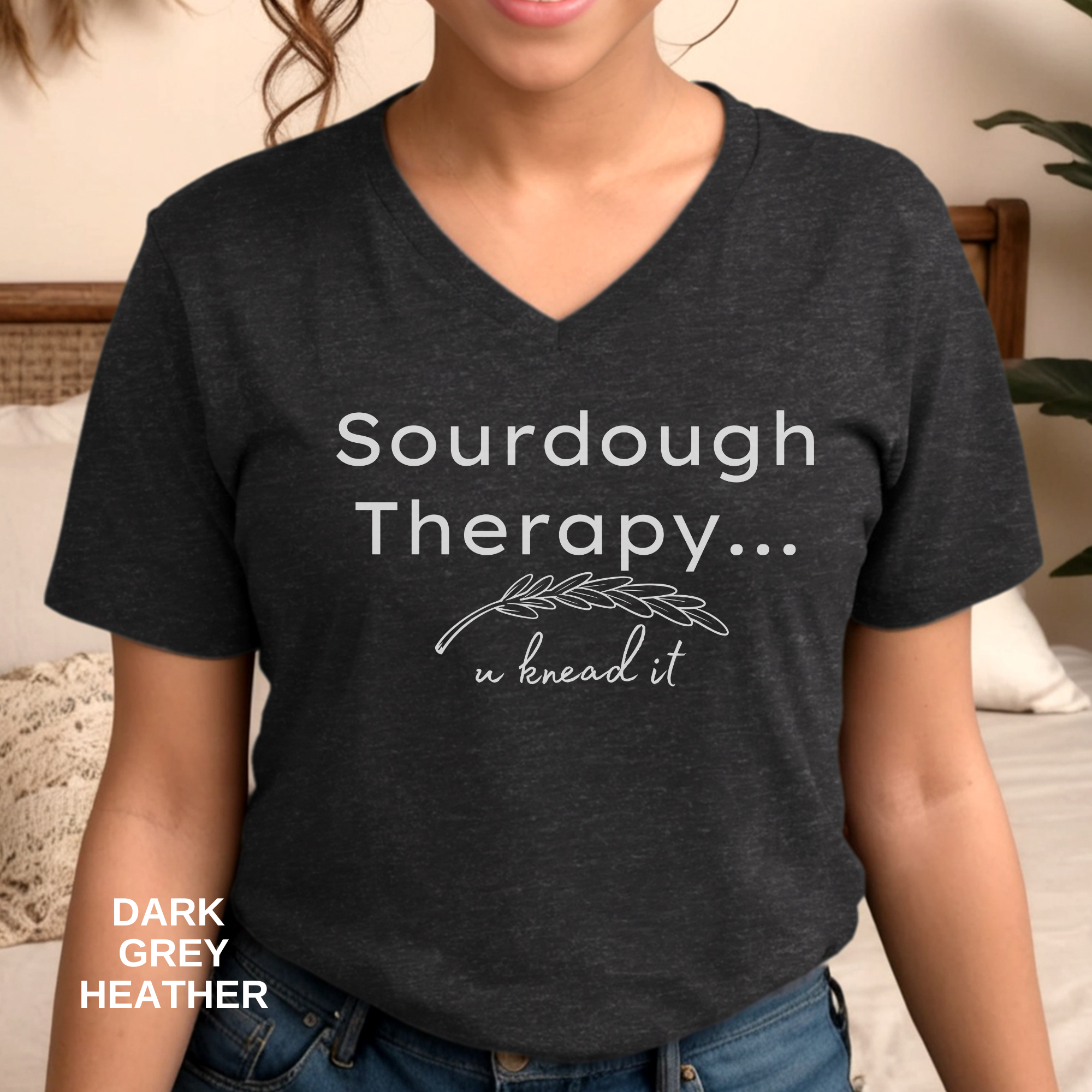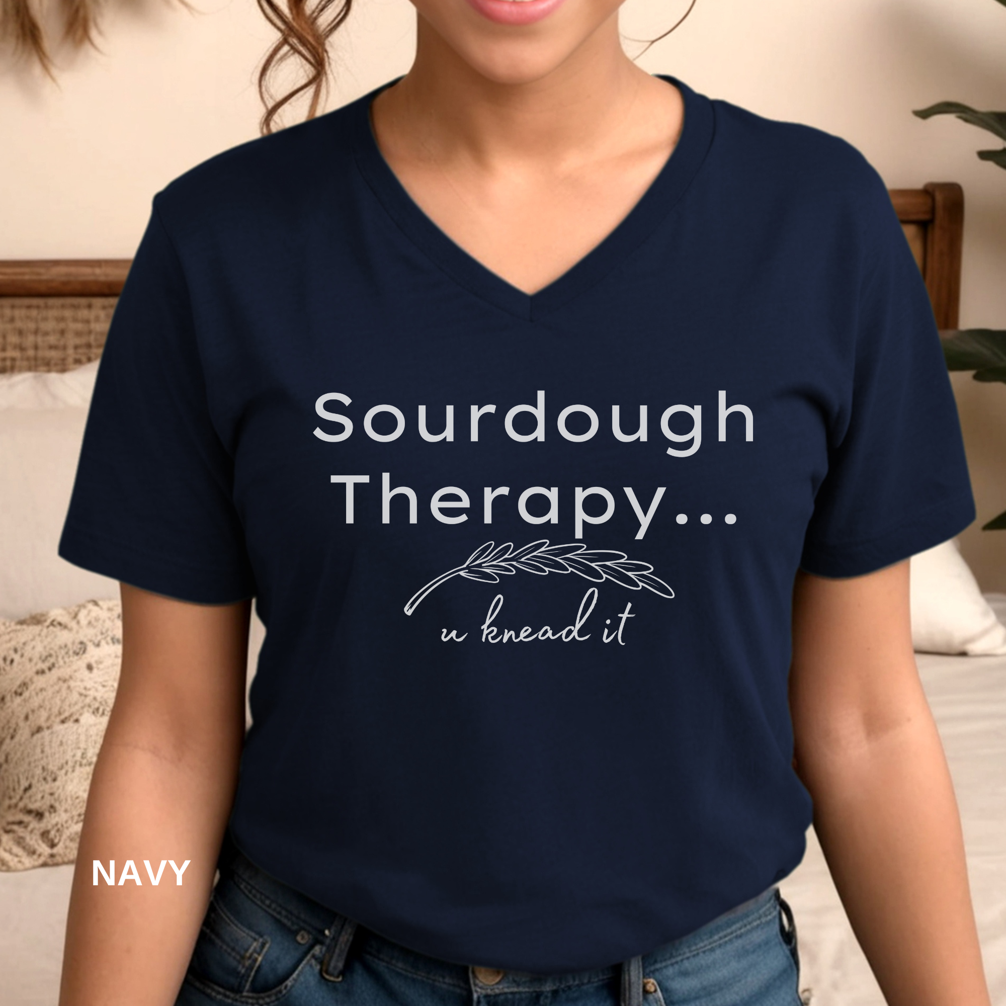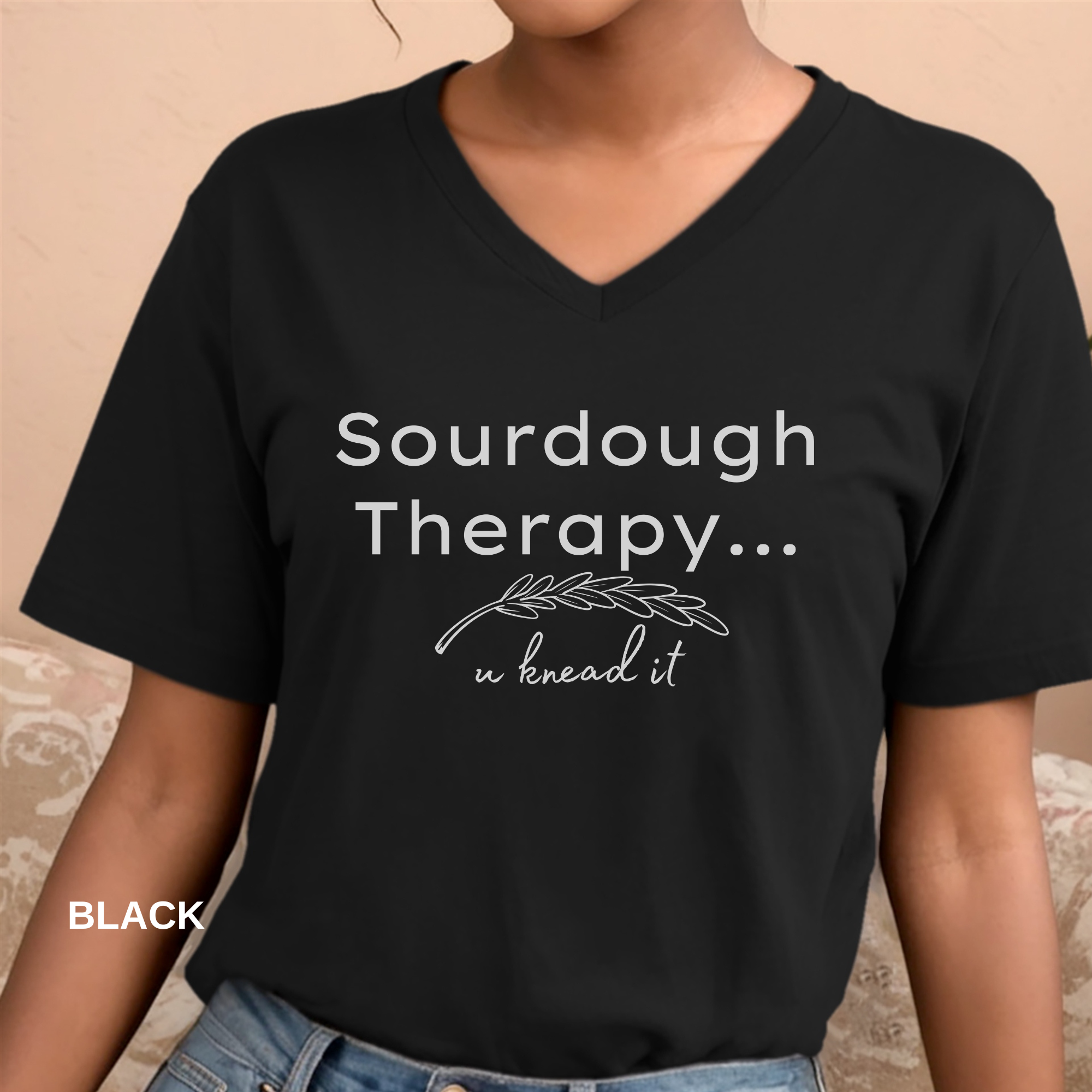 Find solace in sourdough with our “Sourdough Therapy, You Knead It” v-neck t-shirt! Crafted from soft, breathable fabric, this shirt is designed to keep you comfortable during your baking sessions. The v-neck design adds a touch of elegance, making it suitable for any casual occasion. Whether you’re an experienced baker or just beginning your sourdough journey, this t-shirt is sure to bring a smile to your face. With its soothing slogan, it’s the perfect way to express your love for sourdough. Treat yourself or surprise a fellow bread lover with this delightful and practical t-shirt. So, slip on this shirt, grab your dough, and let the therapeutic baking begin!