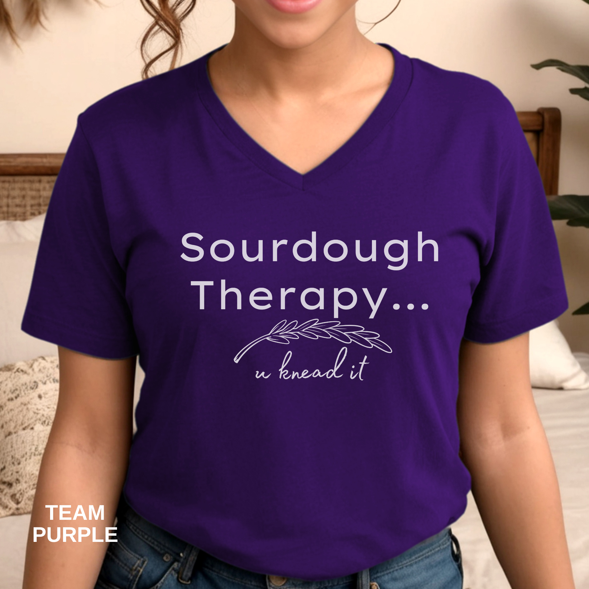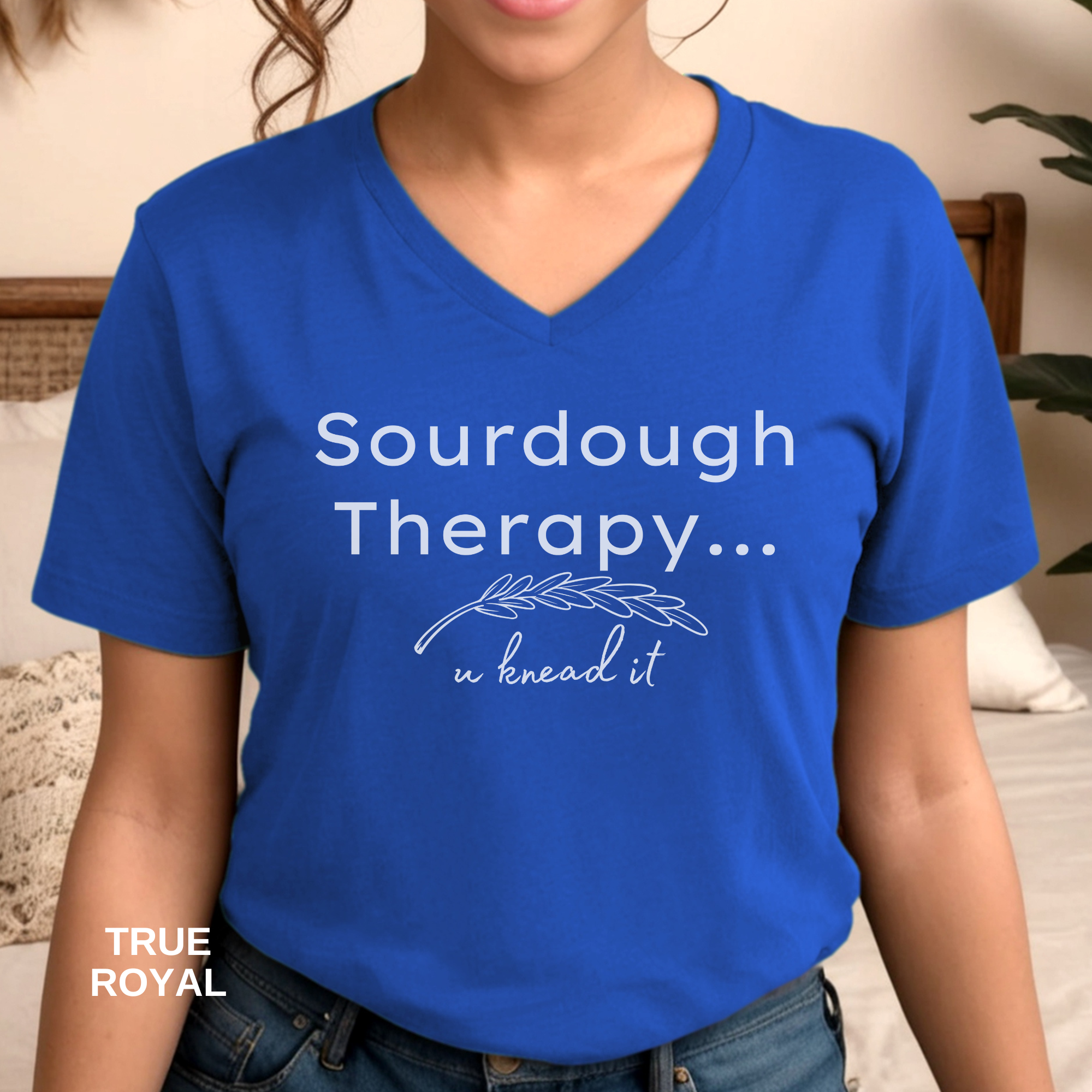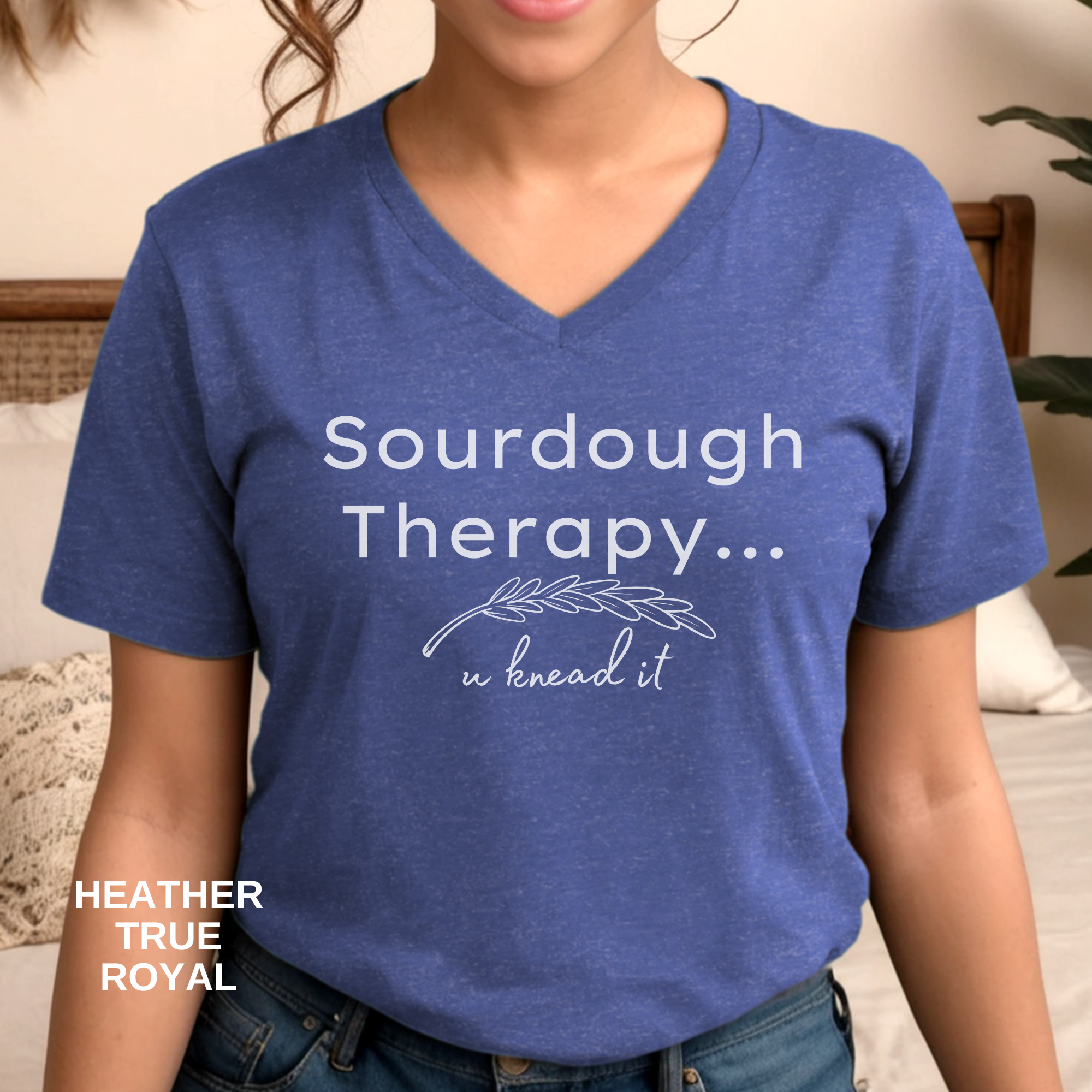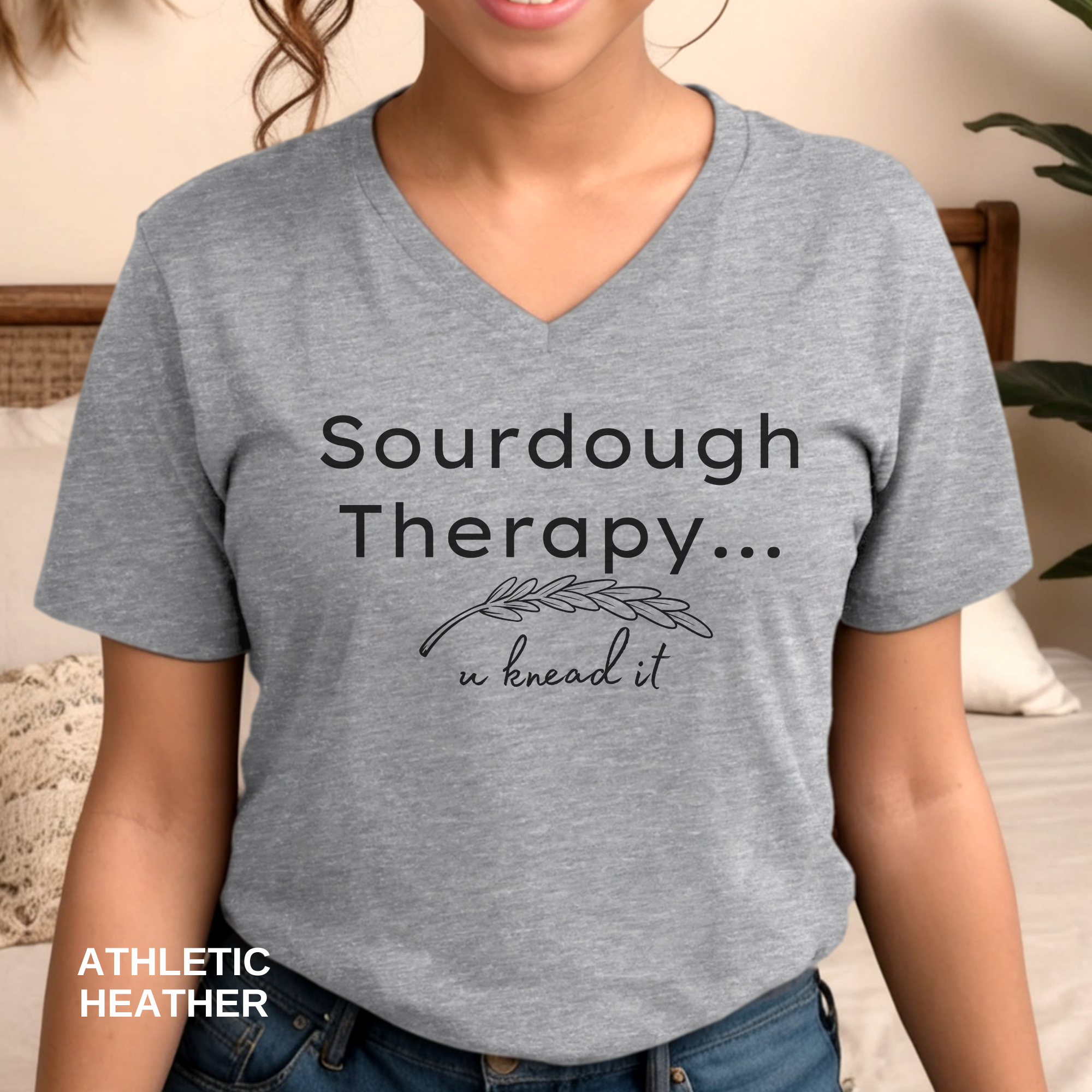 Find solace in sourdough with our “Sourdough Therapy, You Knead It” v-neck t-shirt! Crafted from soft, breathable fabric, this shirt is designed to keep you comfortable during your baking sessions. The v-neck design adds a touch of elegance, making it suitable for any casual occasion. Whether you’re an experienced baker or just beginning your sourdough journey, this t-shirt is sure to bring a smile to your face. With its soothing slogan, it’s the perfect way to express your love for sourdough. Treat yourself or surprise a fellow bread lover with this delightful and practical t-shirt. So, slip on this shirt, grab your dough, and let the therapeutic baking begin!