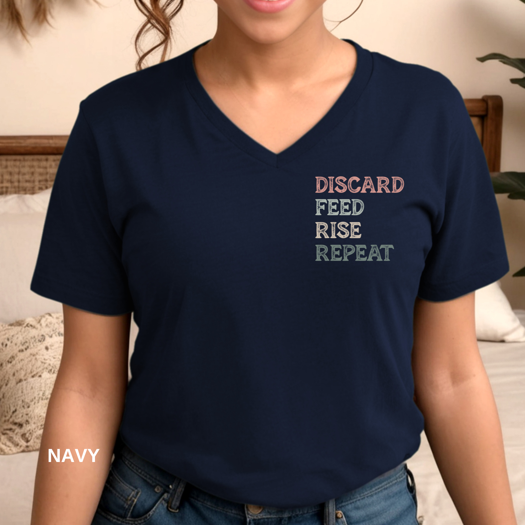 Discard, Feed, Rise, Repeat – V-Neck Tee